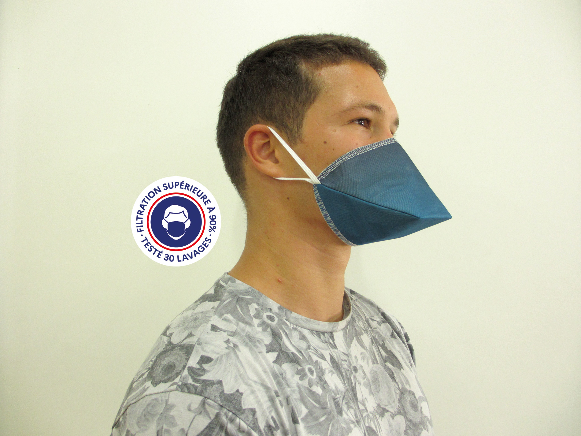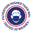 High-performance tested community mask - 30-wash Teximasque®, 100% made in France. Filtration guaranteed up to 30 washes at 60°C.